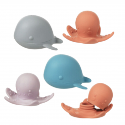 These silicone bath toys are ready for bath time fun! These bath toys come apart for easy cleaning!! What a great feature! Toys measure 4" to 4 1/2" tall. choose from whales or octopi