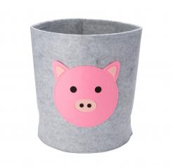 Functional and cute! This felt bin folds flat for easy storage and pops open to 14" tall and 13" wide. It is decorated with a 3-D layered lion face. Perfect for a kids rooms or a fun touch to a family living space.